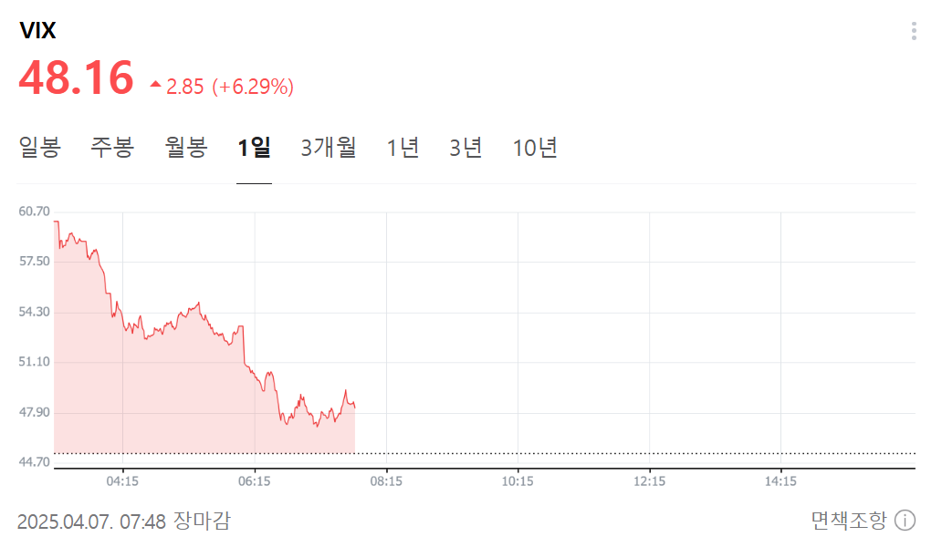 2025년 4월 7일 현재, VIX 지수는 48을 넘었는데요.