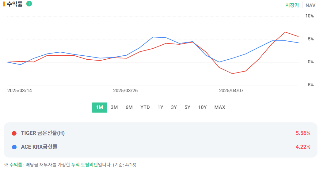 - 거래량은 금 단일 ETF에 비해 낮지만, 금과 은의 가격 변동을 동시에 반영합니다.